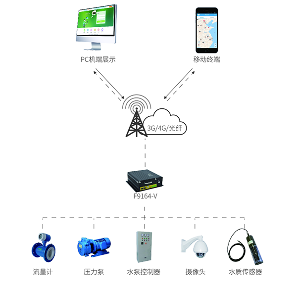 信息采集Q采集水源井水位、出水压力、出水流量、安防报警等信息